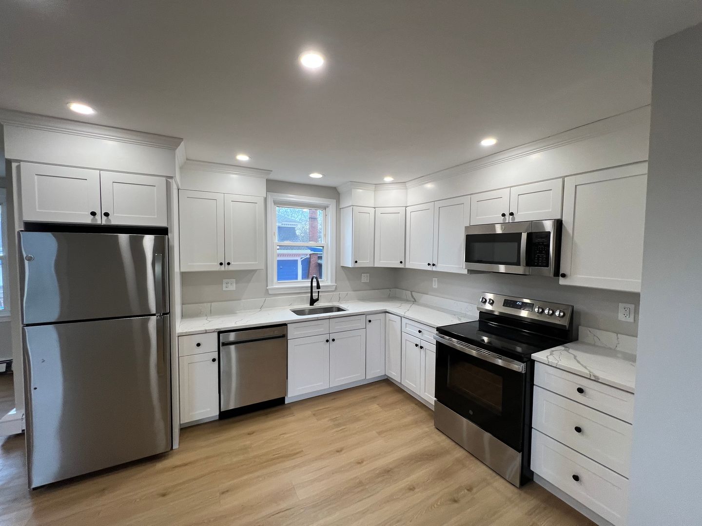 -Fresh neutral paint, recessed lighting, and modern fixtures throughout